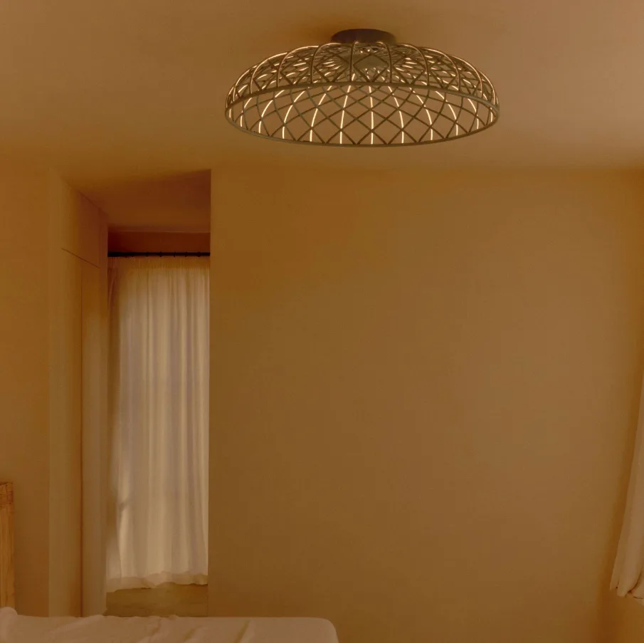 Ova plafonjera je idealna za prostore u kojima se često boravi, od dnevnih soba i trpezarija, pa sve do hotelskih lobija i restorana. Njeno svjetlo ne dominira, već gradi ambijent, dok prepoznatljiv dizajn diskretno ostavlja snažan vizuelni utisak.